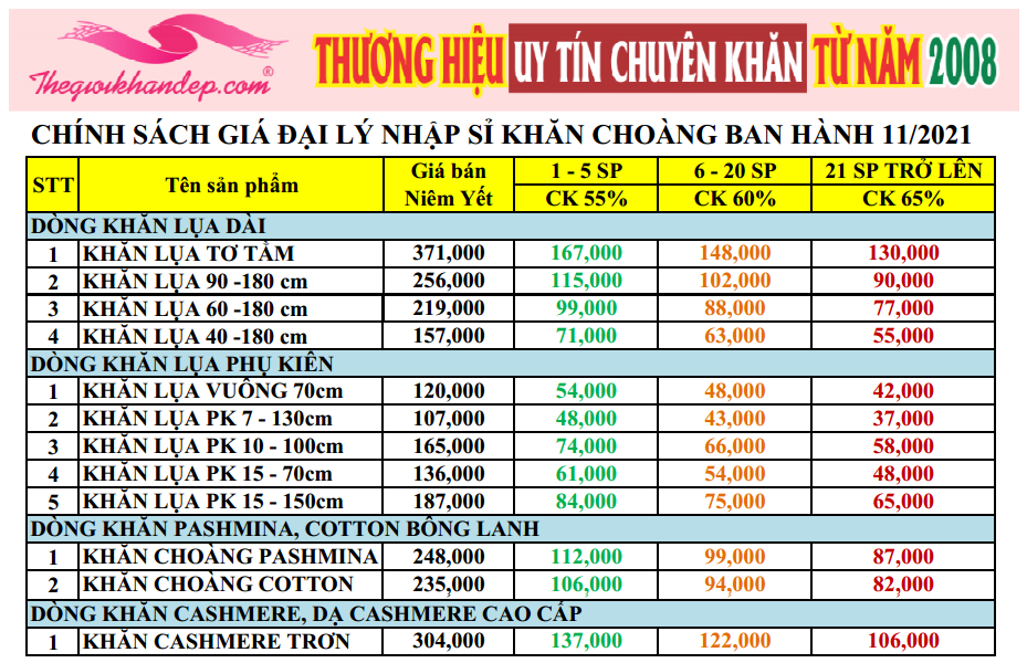 Bảng giá nhập sỉ Khăn Choàng